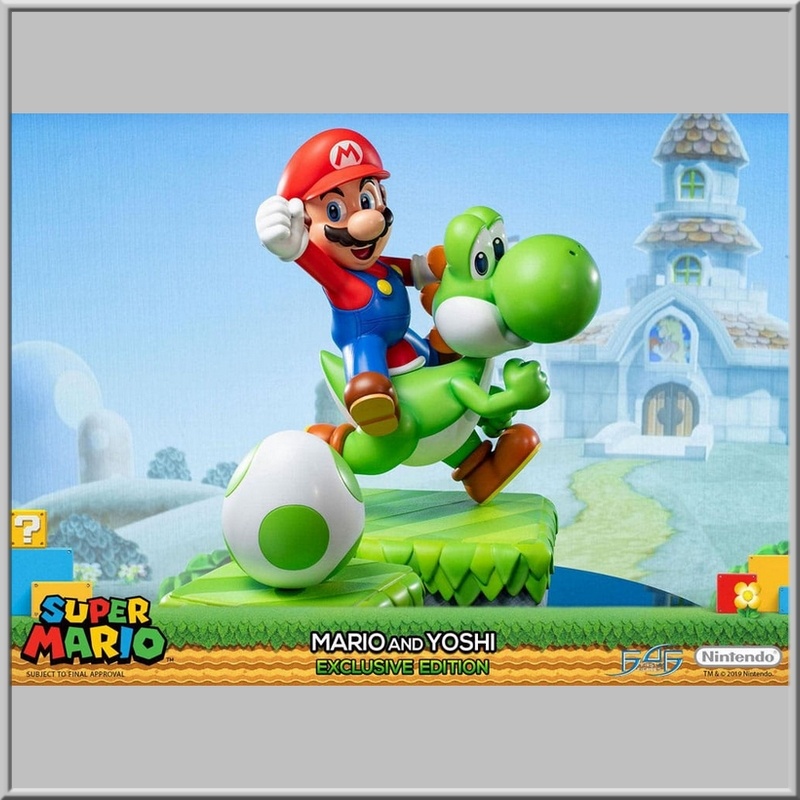 Exclusive Mario & Yoshi resin diorama from the Super Mario video game, approx. 48 x 33 x 24 cm, on a decorative base. Finished, numbered and hand-painted model with a certificate of authenticity from First 4 Figures.