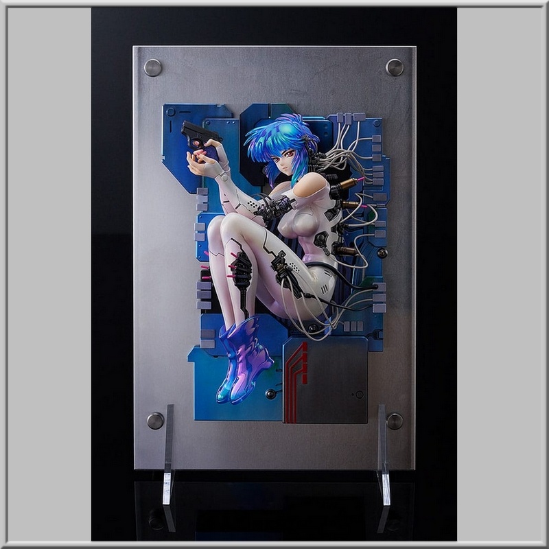 Motoko Kusanagi statuette from the Ghost in the Shell universe in high-quality PVC, 1/7 scale, size approx. 30 cm on base. Figure released in window box packaging by Max Factory.