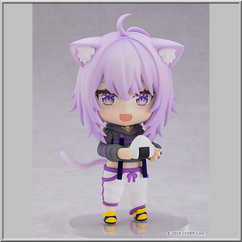 Nekomata Okayu articulated figure from the Hololive Production universe, approximately 10 cm tall, comes on a base with accessories. Model manufactured by Good Smile Company in the Nendoroid collection.