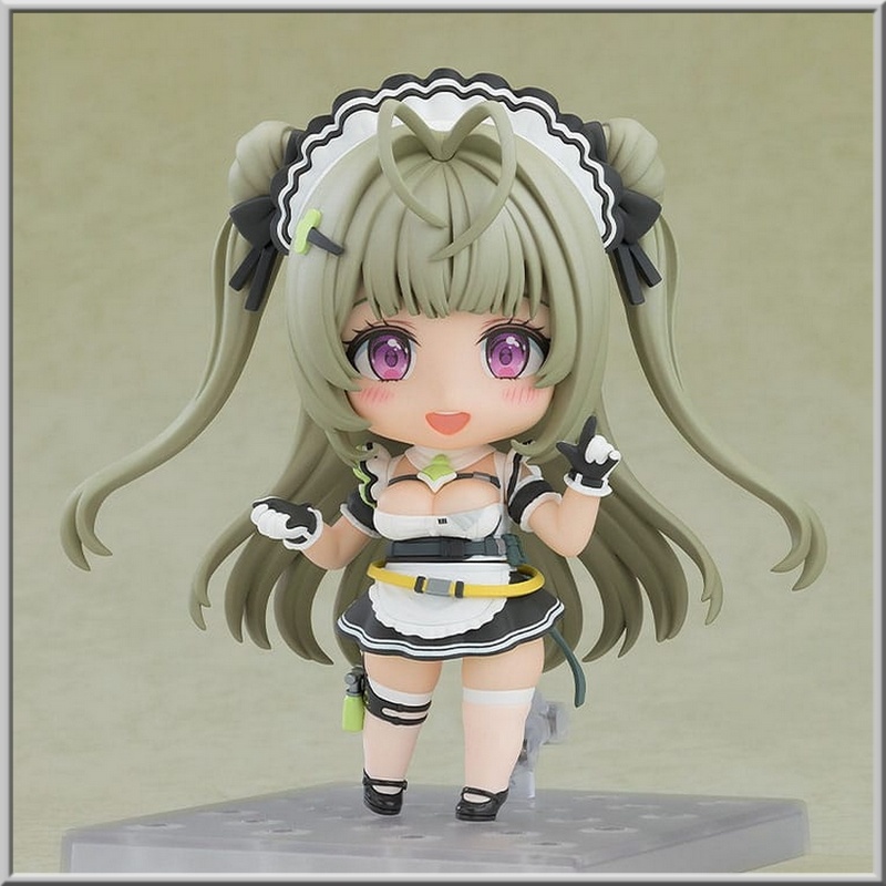 Articulated Soda figure from the Goddess of Victory: Nikke universe, approximately 10 cm tall, with accessories and base. Made by Good Smile Company as part of the Nendoroid collection.