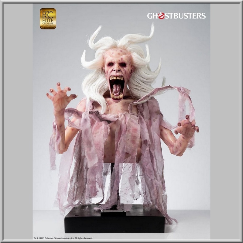 Replica of Librarian from the film Ghostbusters, produced in high-quality resin, dimensions 74 x 46 x 48 cm, limited edition numbered to 84 copies by Elite Creature Collectibles.