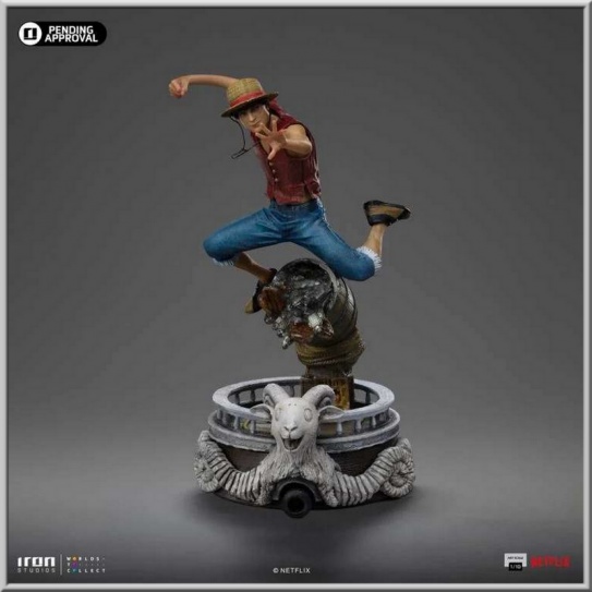 Diorama en résine de Monkey D. Luffy tirée de la série Netflix One Piece à l´échelle 1/10, dimensions env. 23 x 11 x 18 cm sur socle sous licence officielle de la collection Art Scale du fabricant Iron Studios.