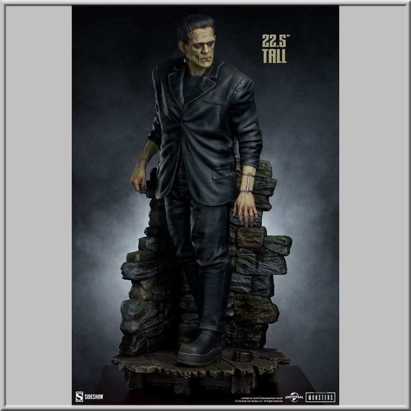 Diorama en résine "Premium Format" de Frankenstein tirée du film Frankenstein, dimensions env. 57 x 32 x 32 cm. sur socle décor. Modèle fini et peint à la main en édition limitée numérotée par Sideshow.
