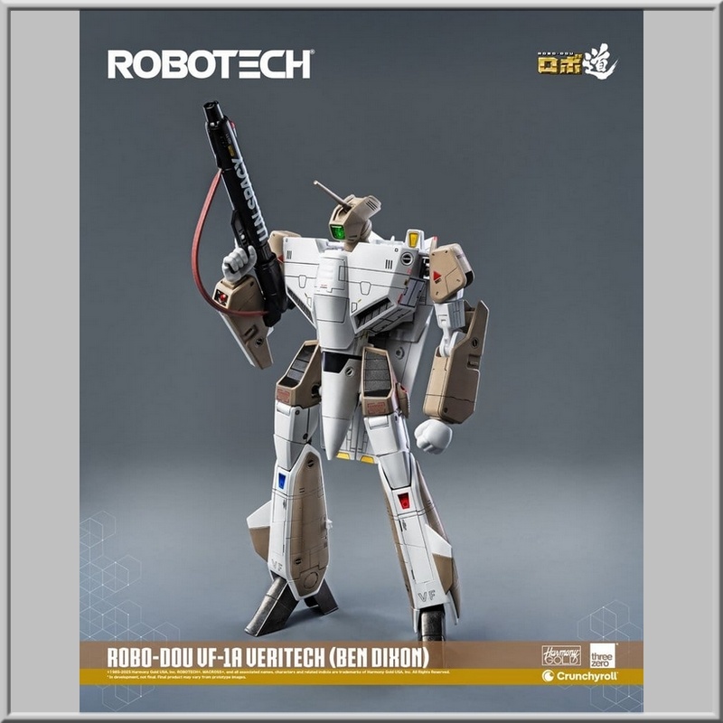 Figurine articulée de VF-1A Veritech (Ben Dixon) tirée de l'univers Robotech taille env. 20,3 cm avec nombreux accessoires de la collection ROBO-DOU du fabricant ThreeZero.