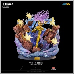 Diorama en résine de Mu du Bélier tirée du manga et animé Saint Seiya, dimensions 45 x 50 x 46 cm en édition limitée numérotée à 1200 exemplaires de la collection HQS de Tsume.