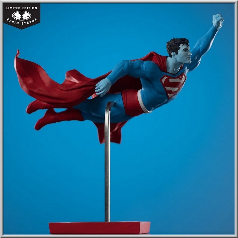 Statuette en résine de Superman by Lee Bermejo tirée de l'univers DC Comics, taille 26 cm en édition limitée de la collection Red & Blue du fabricant McFarlane Toys.
